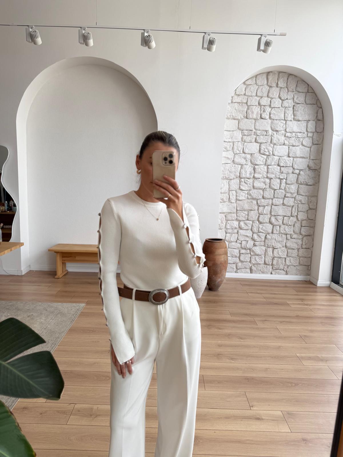 Kol Aksesuarlı Lacivert Çelik Triko Kol Aksesuarlı Mürdüm Çelik Triko