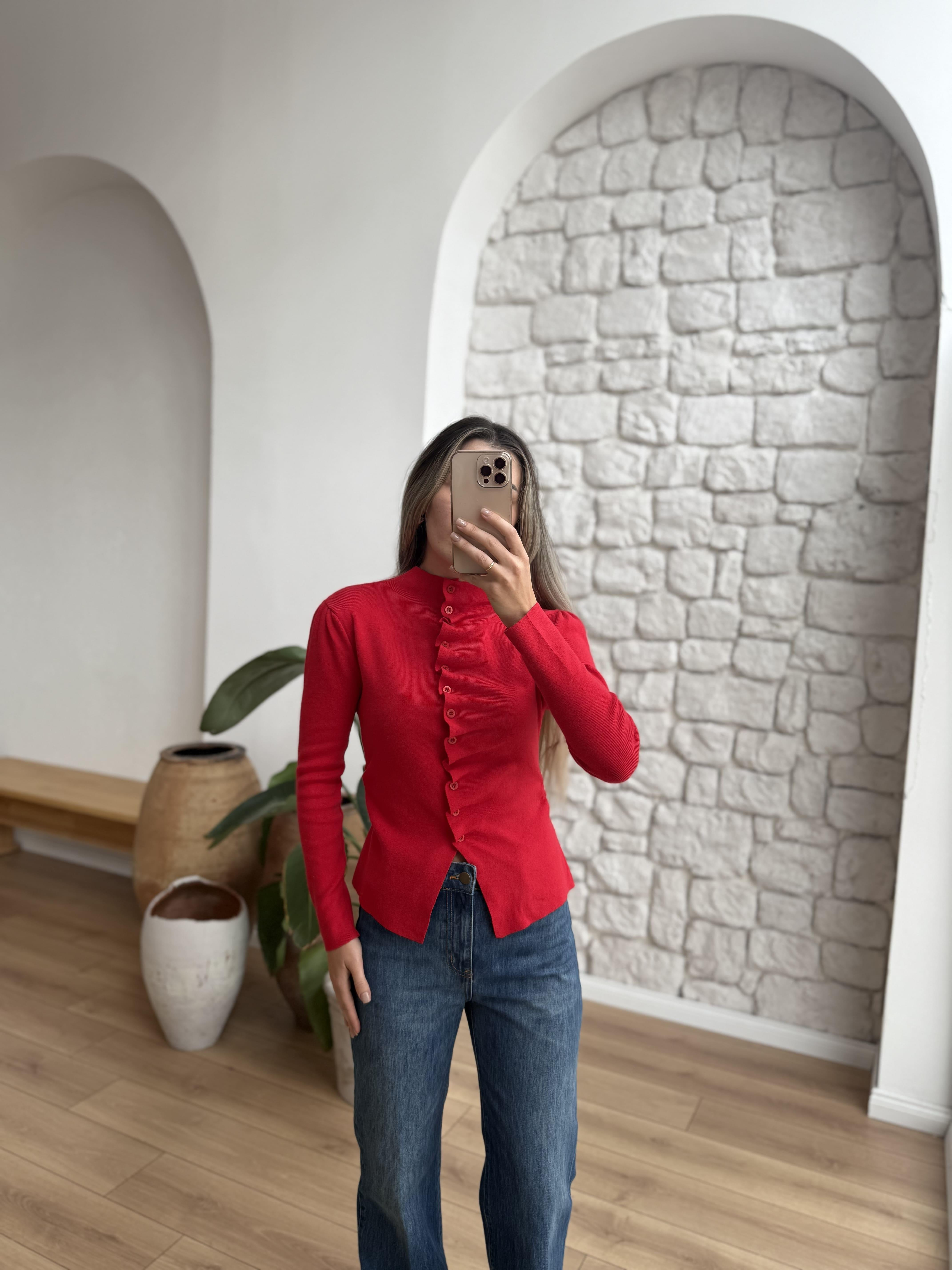 Loli Uzun Kollu Kırmızı Triko Bluz