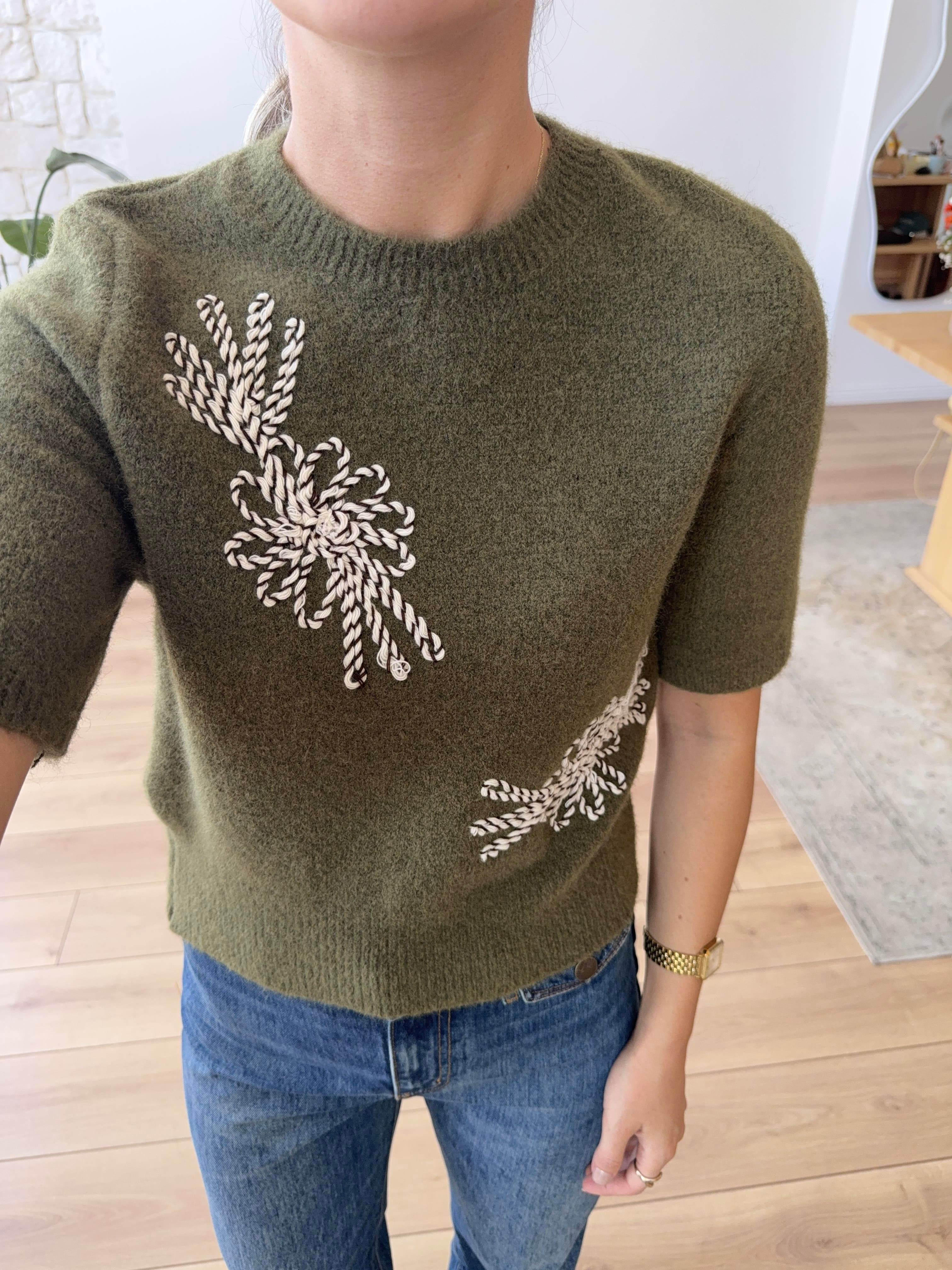 Önü İp İşlemeli Haki Kısa Kollu Triko