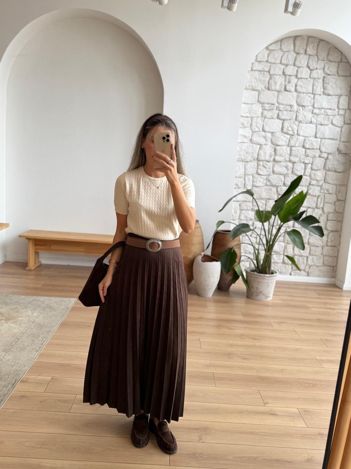Piliseli Haki Süet Etek Piliseli Bordo Süet Etek Piliseli Siyah Süet Etek