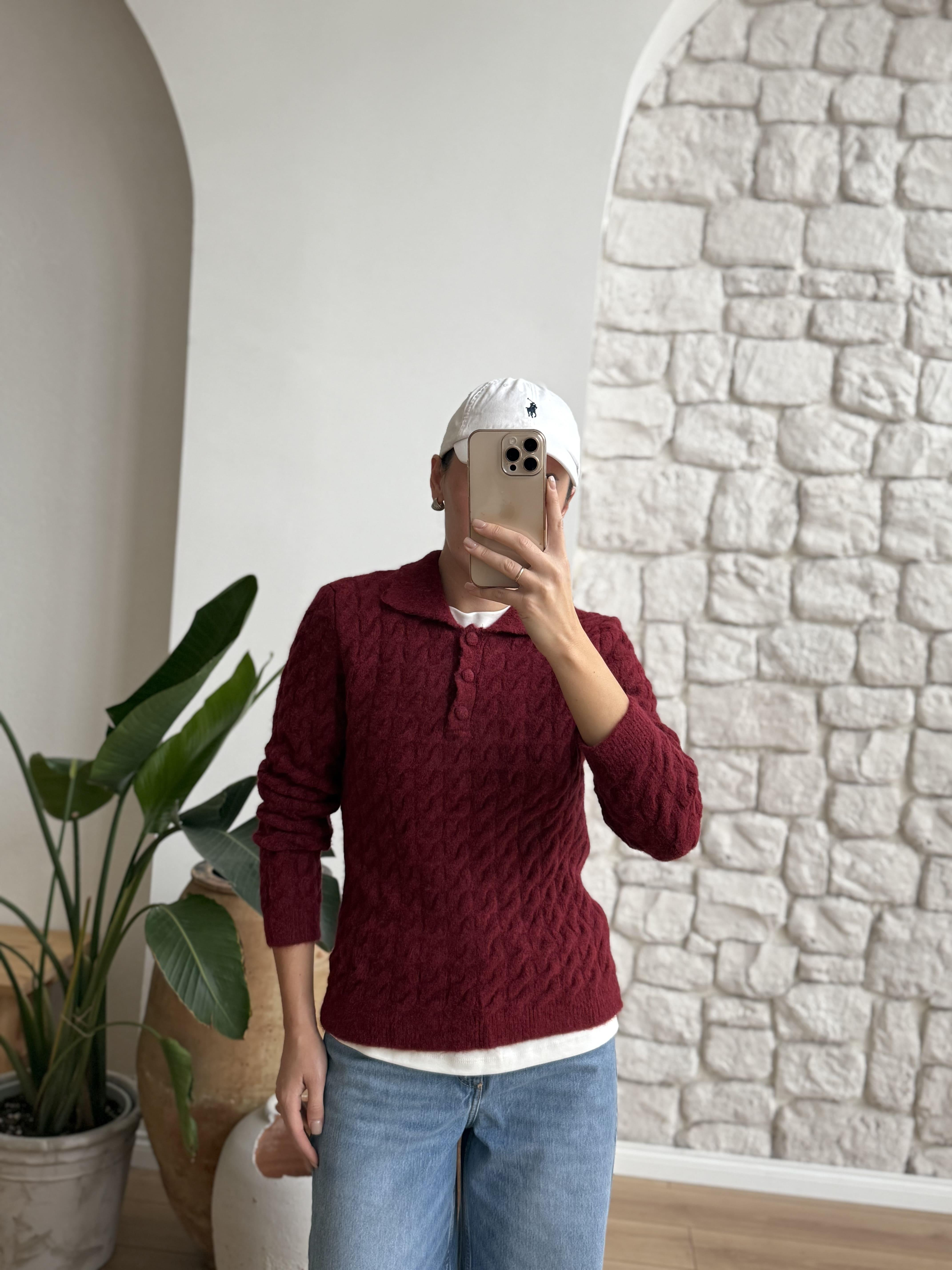 Saç Örgü Polo Yaka Sarı Triko Saç Örgü Polo Yaka Haki Triko