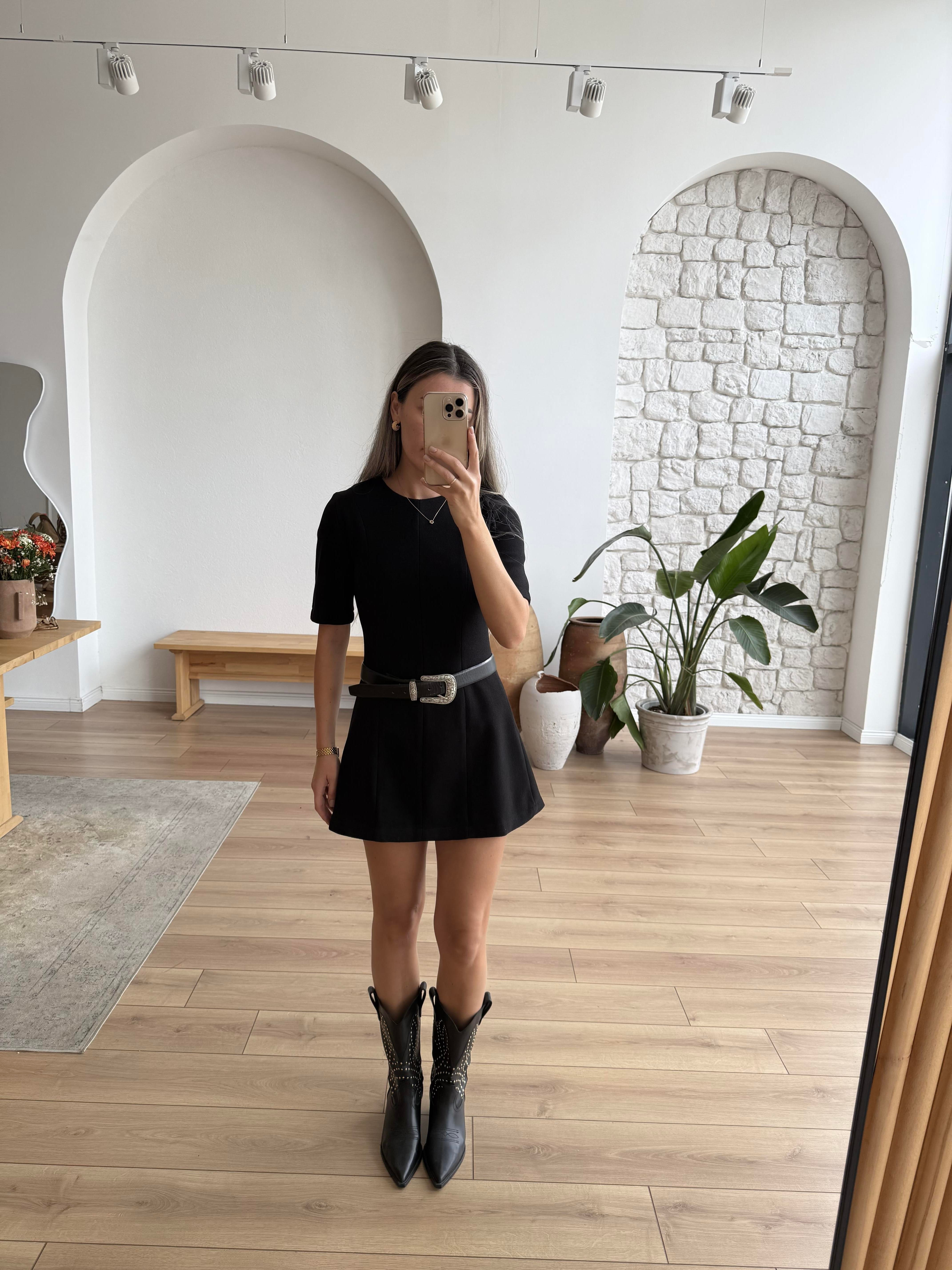 Siyah Kaşe Mini Elbise