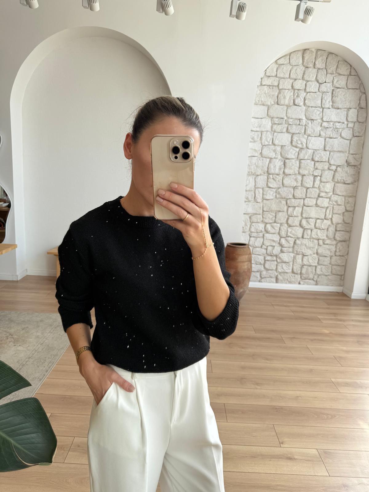 Siyah Parıltılı Uzun Kollu Triko Bluz