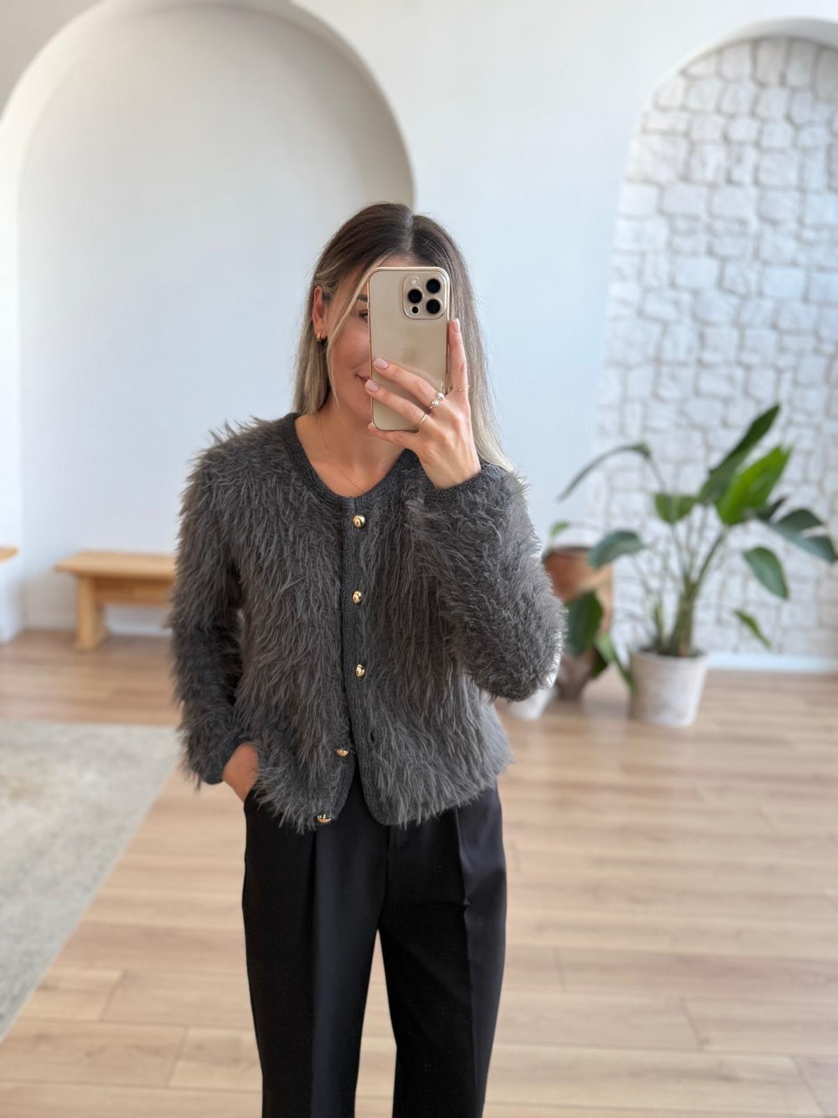 Tüylü Antrasit Hırka
