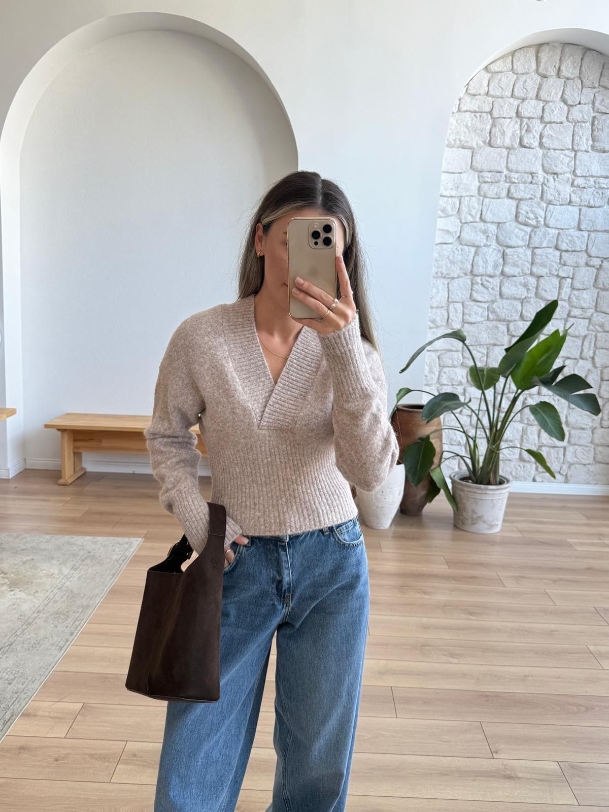 Vera Krem Rengi Kazak Vera Acı Kahve Kazak