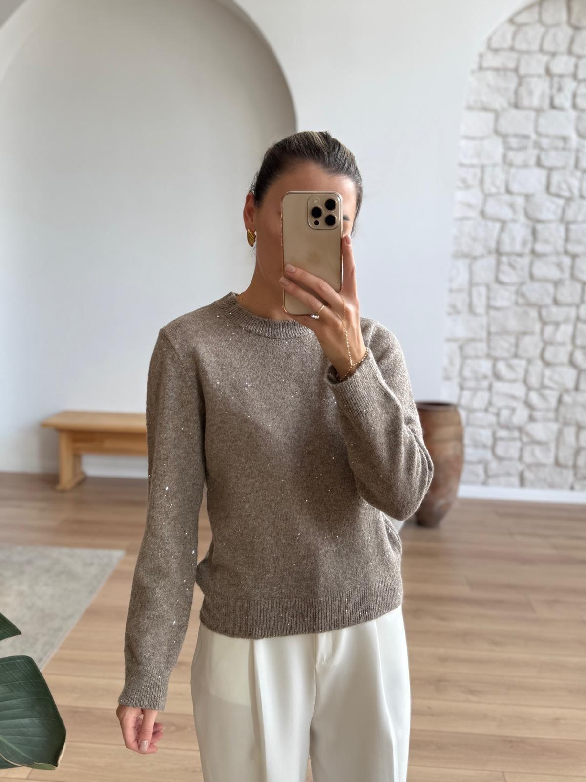 Vizon Parıltılı Uzun Kollu Triko Bluz
