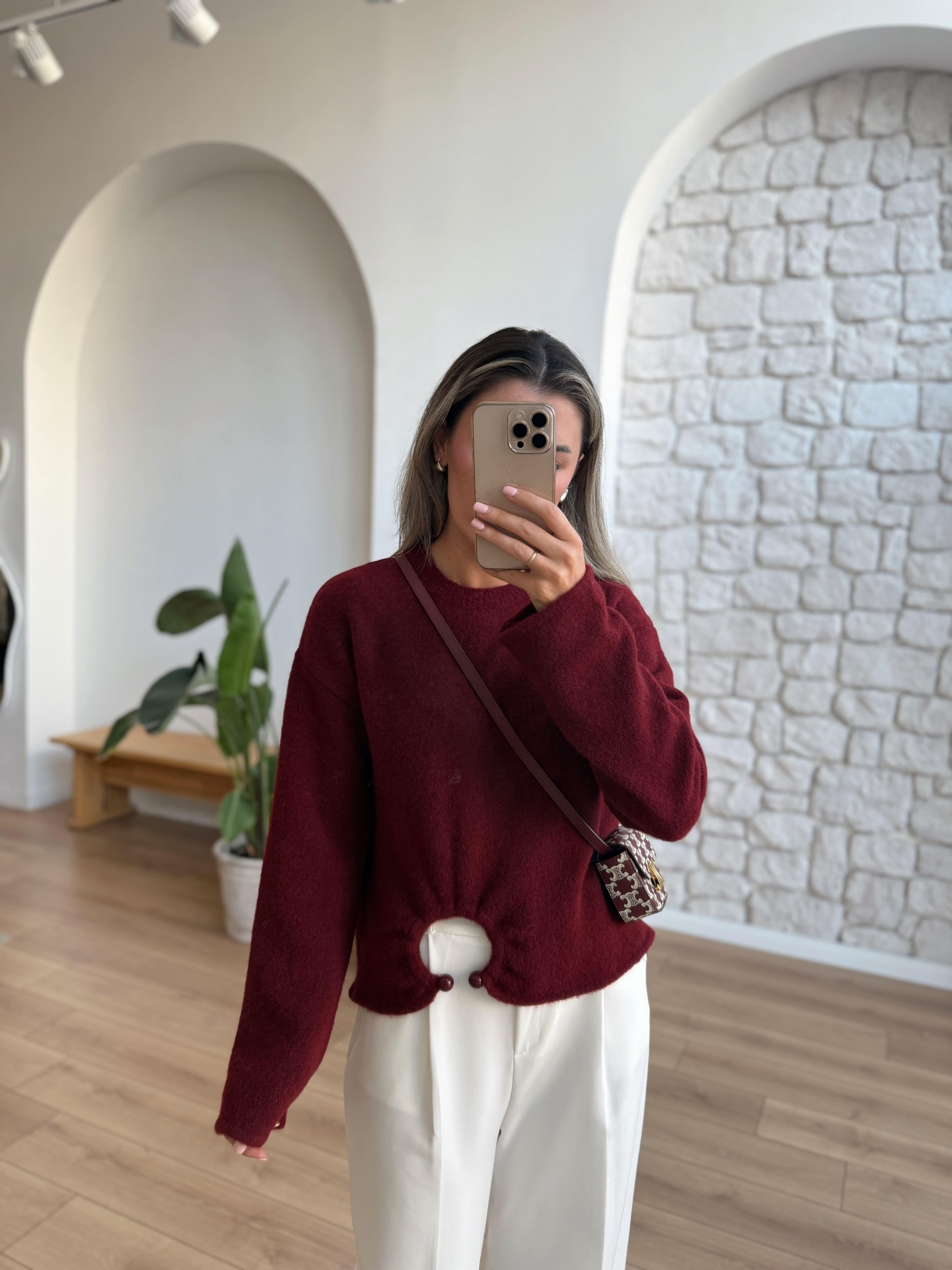 Yanı Toka Detaylı Ekru Triko Kazak Yanı Toka Detaylı Yeşil Triko Kazak